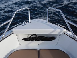 Även akterbänkens konstruktion är ny och följer samma designspråk som i Fox-modellerna. Hela akterbänken, inklusive arm- och ryggstöd, kan öppnas och inuti finns ett stort tredelat förvaringsutrymme för packning och utrustning. Under akterbänken förvaras även akterkapellet (tillbehör) då det inte används. Både föraren och samtliga passagerare har gott om benutrymme. På sidorna om motorbrunnen finns två förvaringsboxar för tampar och ankare. Vid mittgången i den främre sittbrunnen är det extra sittplatser och under dem finns det stora förvaringsutrymmen. Tamparna till fören förvaras enkelt i det från sidan öppna stuvutrymmet där luften kan cirkulera och torka blöta tampar. För trygghetskänslan vid i- och urstigning svarar de stadiga grabbräckena.