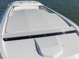 Keulan hytin viereen jää hyvä kulkuväylä ohjaushyttiin. Keulan korkeat laidat ja kaiteet tekevät veneessä liikkumisen turvalliseksi.